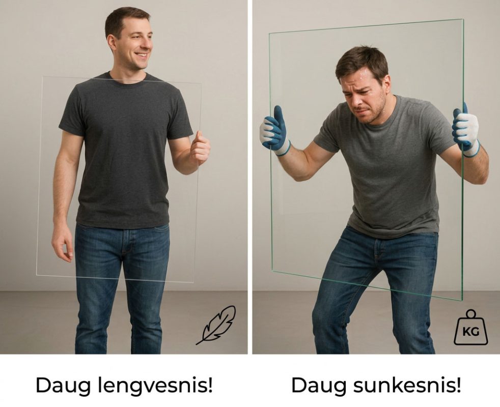 • Iki 17 kartų tvirtesnis už stiklą